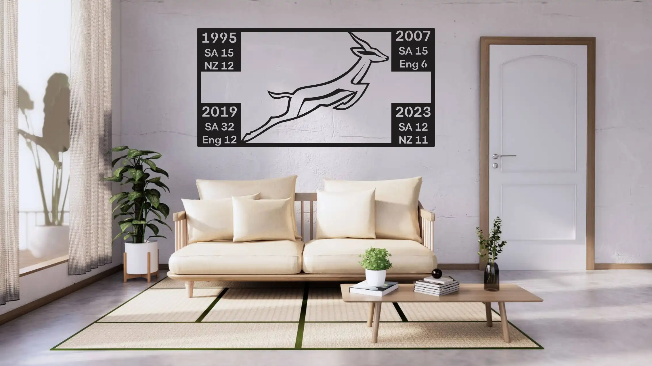 Custom Springbok With Rugby World Cup Victories 2.5mm Mild Steel Wall Art